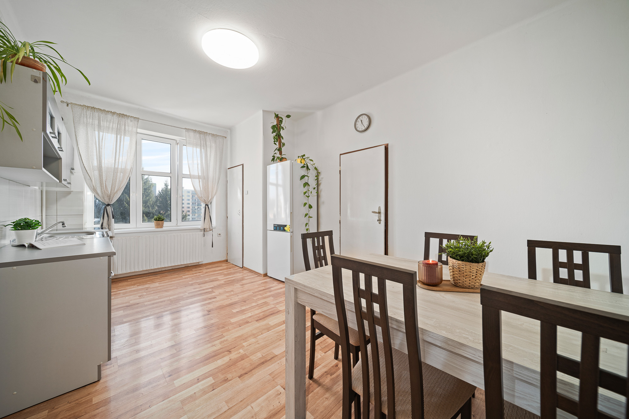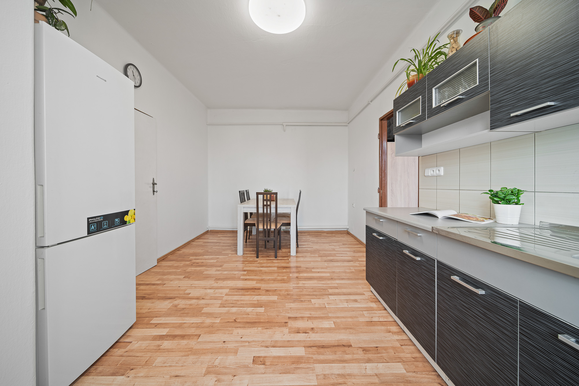 Nenechte se zmást dispozicí 2+1, lehkým posunutím příčky mezi nejmenší místností (pokoj/pracovna) a kuchyní Vám vznikne velmi pohodlné a prostorné 3+1 a to už je dispozice ideální pro rodinné bydlení.