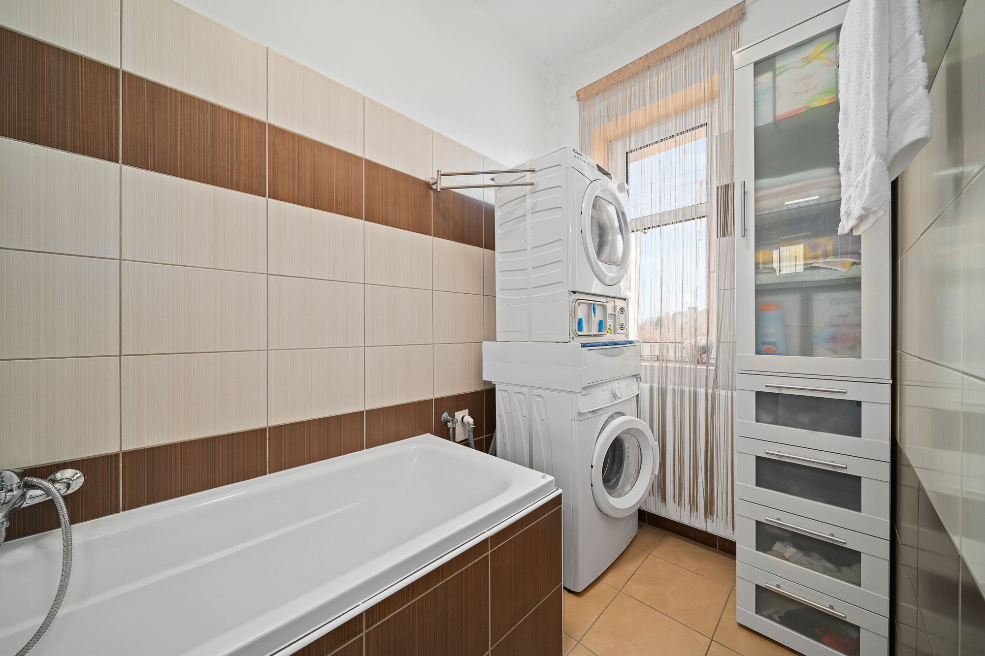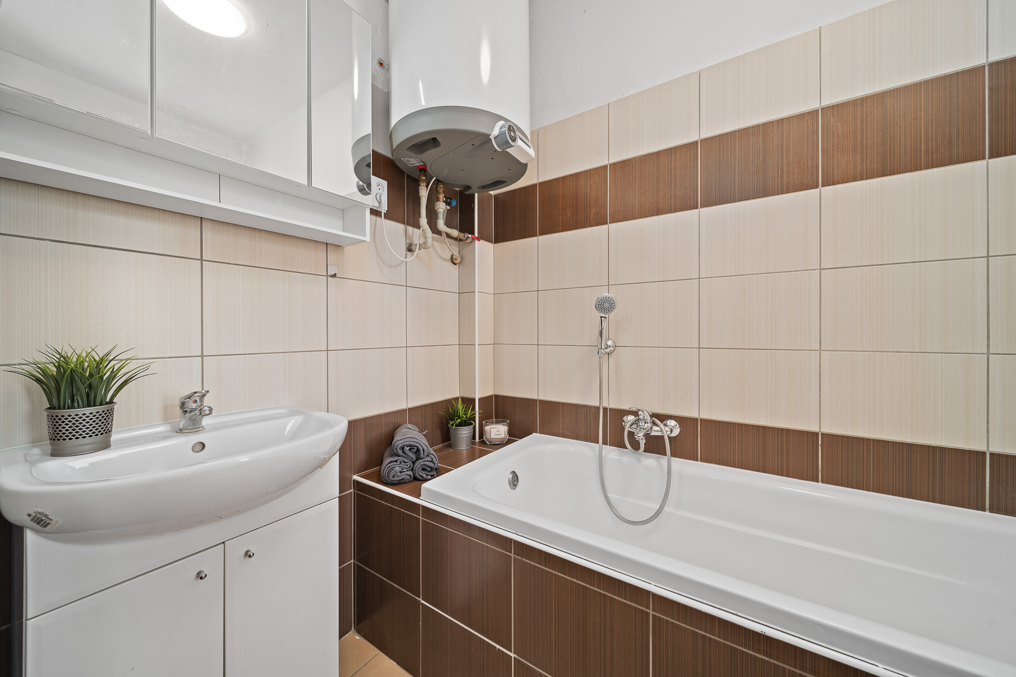 Tento slunný byt prošel dílčími rekonstrukcemi (koupelna, obývací pokoj a ložnice), ale z velké části je tu ještě původní elektřina a třeba kuchyň a chodba by si zasloužily modernizaci. Nový je také elektrokotel, který zajišťuje vytápění bytu. Ohřev vody je řešen elektrickým bojlerem, aktuální výše měsíčních záloh na elektřinu je 4 140,- Kč měsíčně.