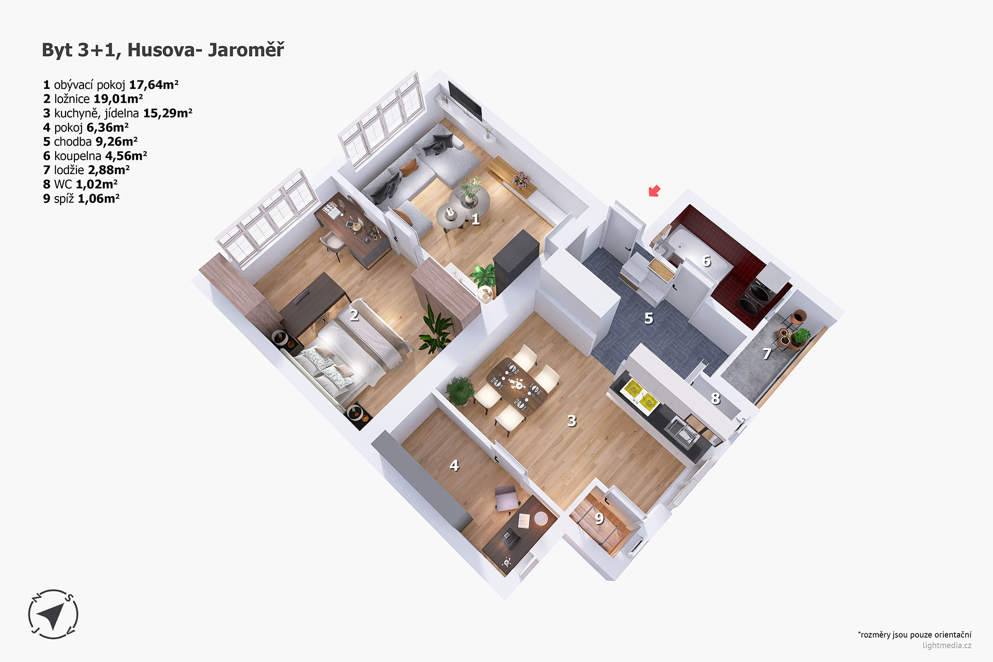 Pokud hledáte bydlení ve skvělé dostupnosti centra, obchodů, škol a školek a zároveň takové, kde budete mít svatý klid, tak tento byt v Jaroměři- v ulici Husova, je to místo.