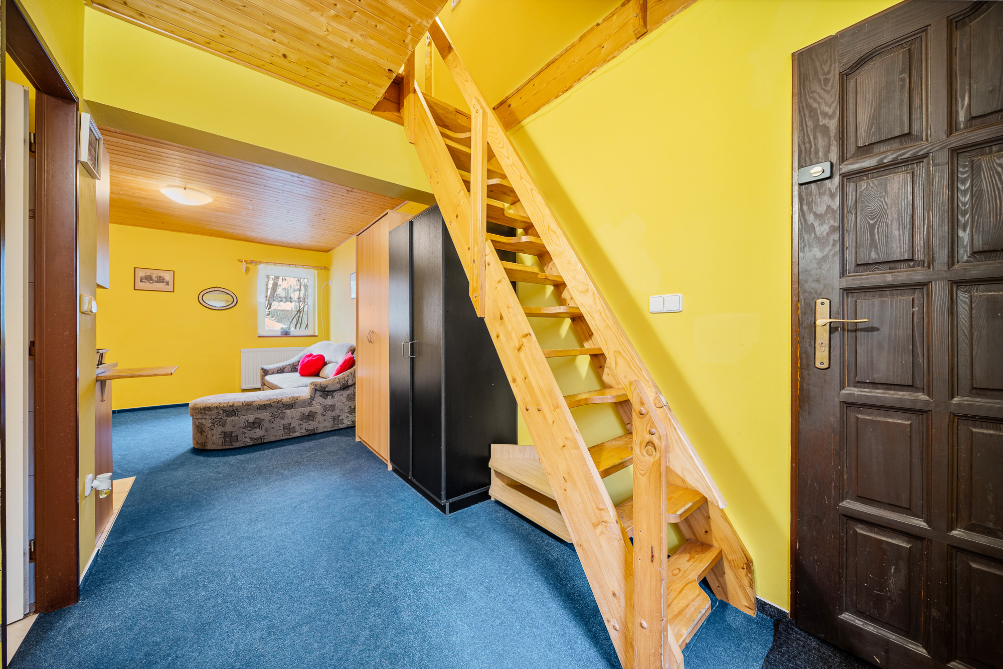 - v šikminách praktické šatny a úložné prostory